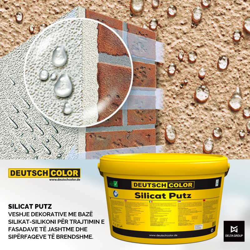 👉Veshje dekorative me bazë silikat-silikoni për trajtimin e fasadave të jashtme dhe sipërfaqeve të brendshme