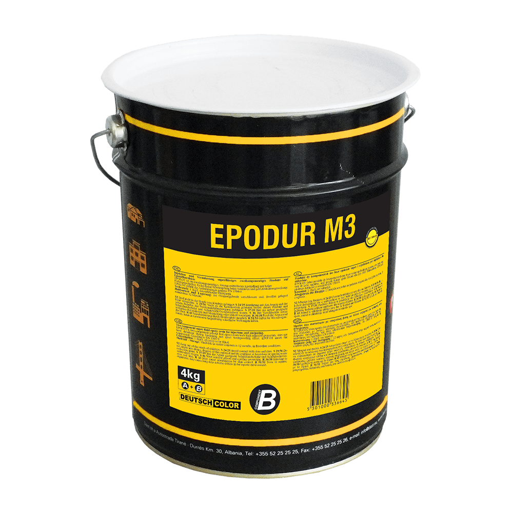 EPODUR M3 përdoret për të realizuar injeksione me rresinë në çarjet e betonit që janë nga 1 – 3 mm të gjerë.