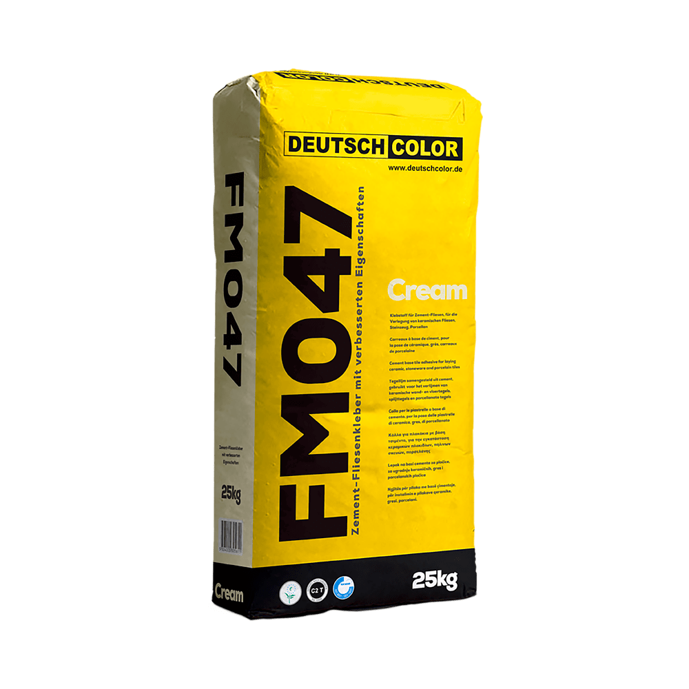 FM 047 është klasifikuar si C2T sipas EN 12004, baza C – çimento, 2 – ngjitës me forcë ngjitëse të lartë, T – antirrëshkitshmëri.