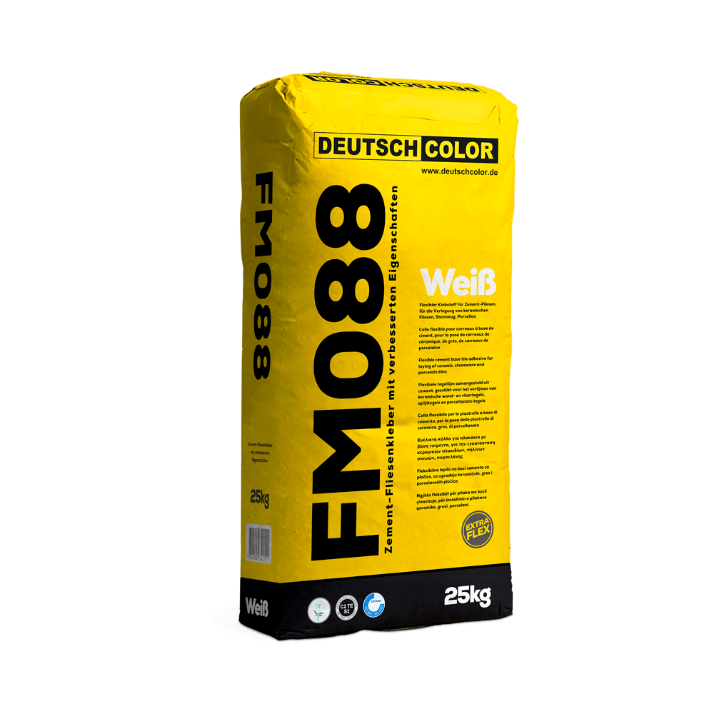 FM 088 përdoret për shtrimin e pllakave prej qeramike, gres, porcelani dhe pllakave të dimensioneve të ndryshme në sipërfaqe të ndryshme të tilla si: beton, veshje izoluese, çimento, suva, pllaka të vjetra, etj. Ky produkt është i përshtatshëm për brenda dhe jashtë. FM 088 gjithashtu mund të aplikohet në sipërfaqe të deformueshme si: pllaka gipsi, druri apo dysheme me ngrohje qëndrore kur bëhet përforcimi i tij me adetivin LATEX, i cili përmirëson parametrat teknike ngjitëse.