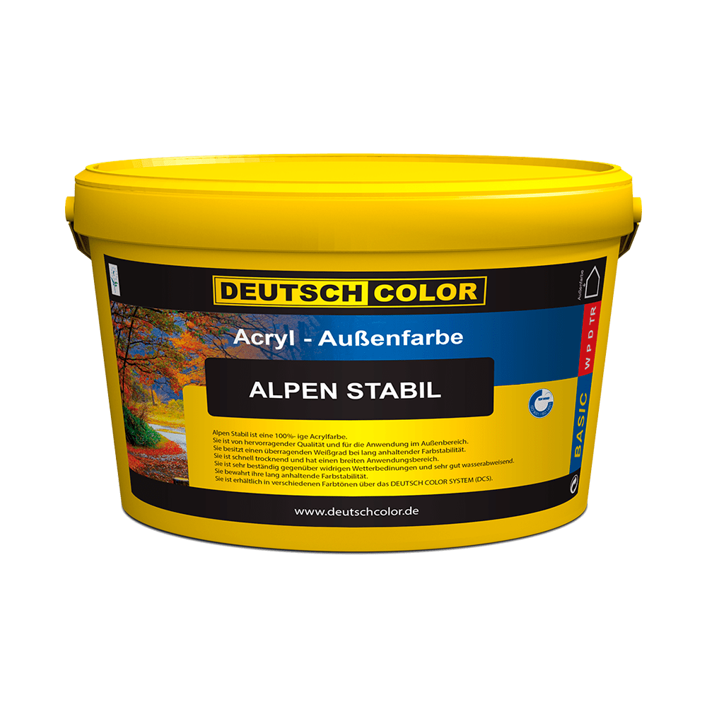 Hochwertige Acrylfarbe mit hoher Beständigkeit gegen verschiedene Witterungsbedingungen, basierend auf Acrylemulsion.