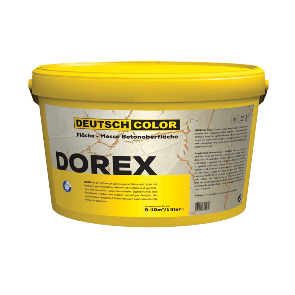 Dorex kann drinnen über angewendet werden; neue und alte Putze auf der Basis von hydraulischen Klebstoffen, Betonoberflächen, Putzoberflächen und Sperrholz, alte organische oder mineralische Farben und Beschichtungen, trockene, kompakte, saugfähige und kohäsive Konglomerate verschiedener Art, die eine mineralische Absorption gewährleisten, Holzoberflächen, Sperrholz, gepresstes Sperrholz und dergleichen, solange die Oberfläche mit der entsprechenden Grundbeschichtung behandelt wird.